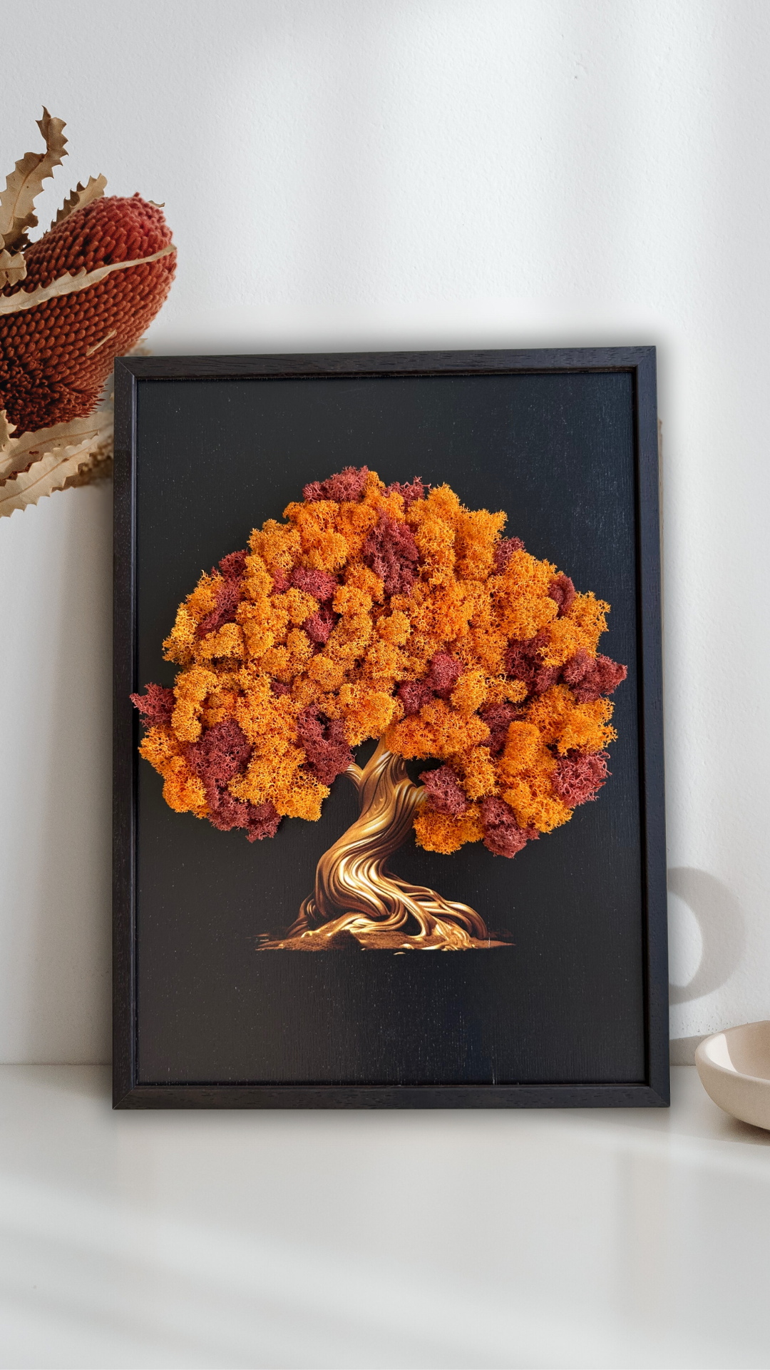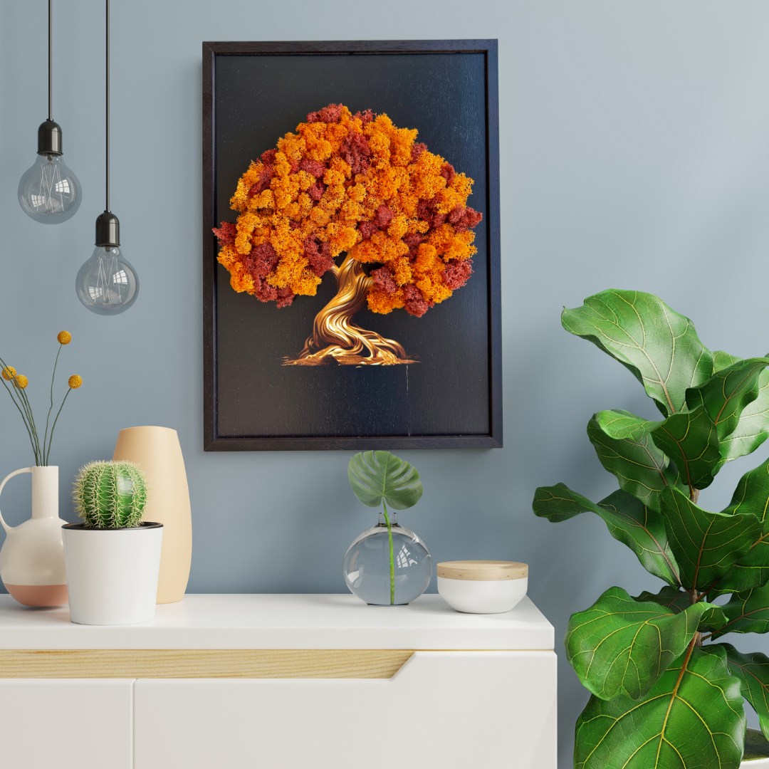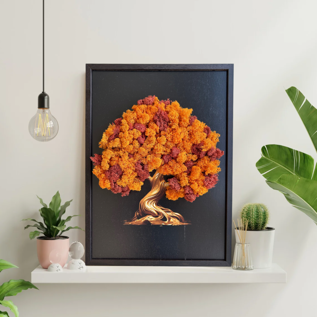 Experience the power of nature and symbolism with this Moss Orange Tree of Life Wall Art on the dark wooden base, a stunning handmade piece featuring lush preserved moss. This elegant decor symbolizes strength, renewal, and harmony, making it a meaningful addition to any home or office.